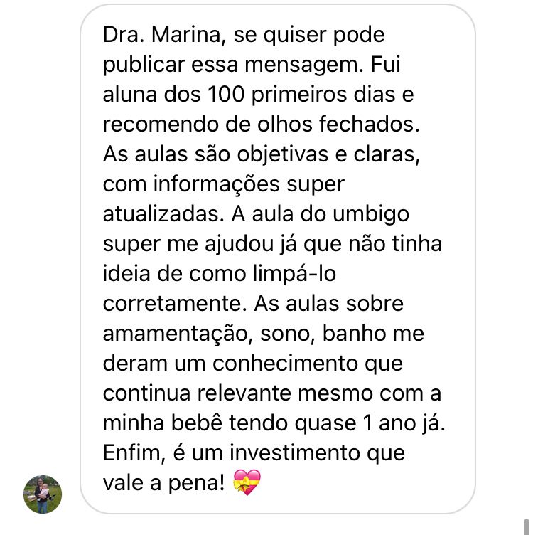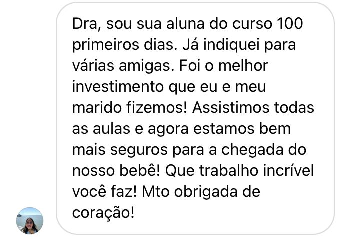 Com o Curso Os 100 Primeiros Dias, mães e pais de primeira viagem ou que desejam aprimorar seus cuidados com o recém-nascido encontrarão orientações valiosas sobre amamentação, higiene, rotina de sono e dicas para lidar com cólicas e choro do bebê. Adquira o curso agora e esteja preparado para os desafios dos primeiros 100 dias.